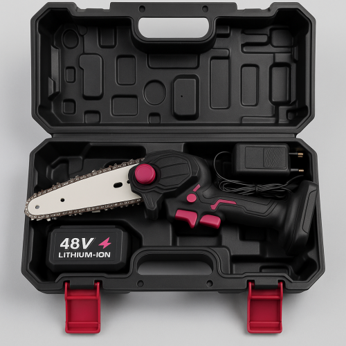 Con esta mini motosierra de mano inalámbrica, ligera y práctica, podrás trabajar cómodamente con una sola mano. Ideal para jardinería, bricolaje y uso diario en casa.
